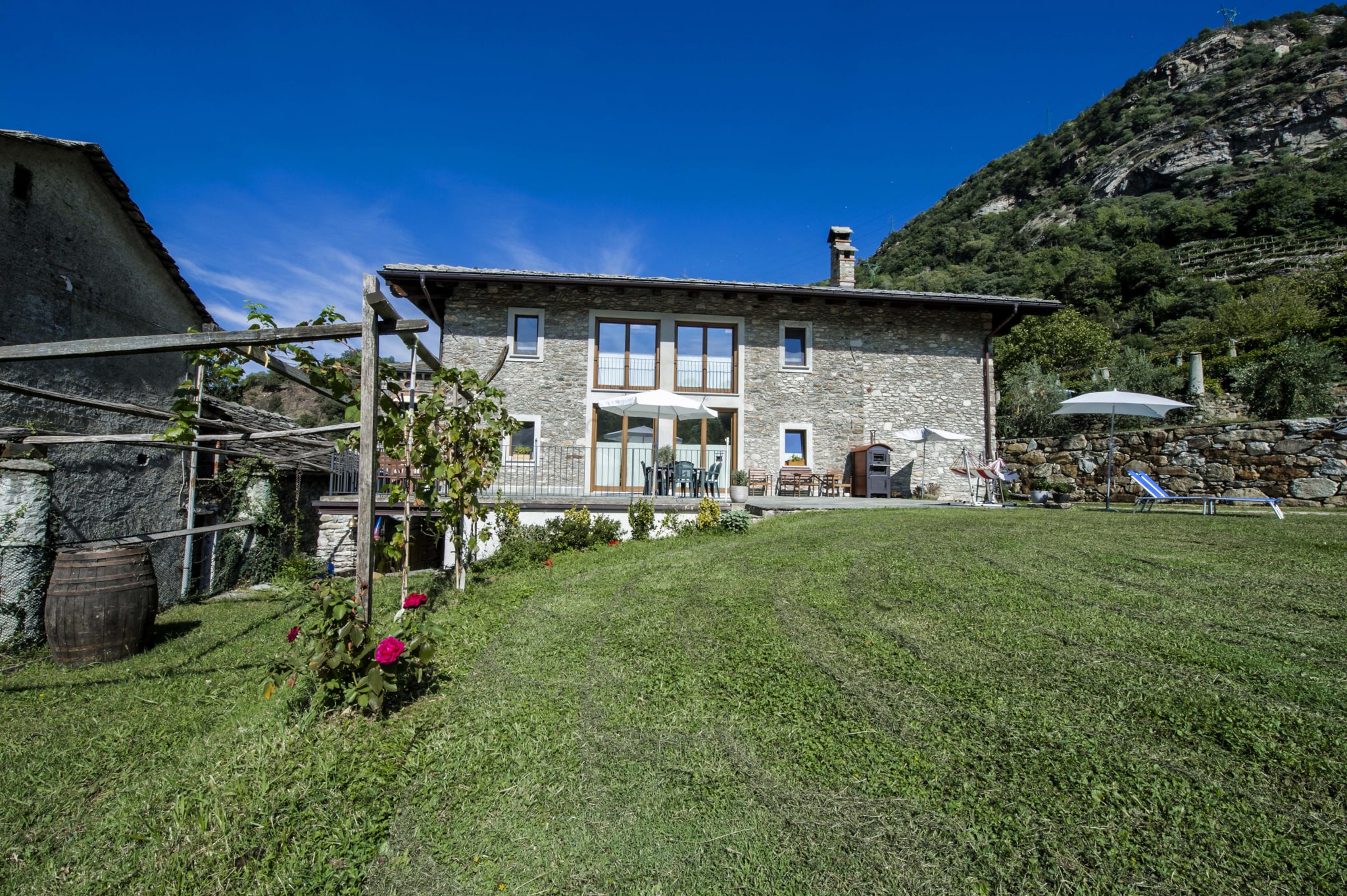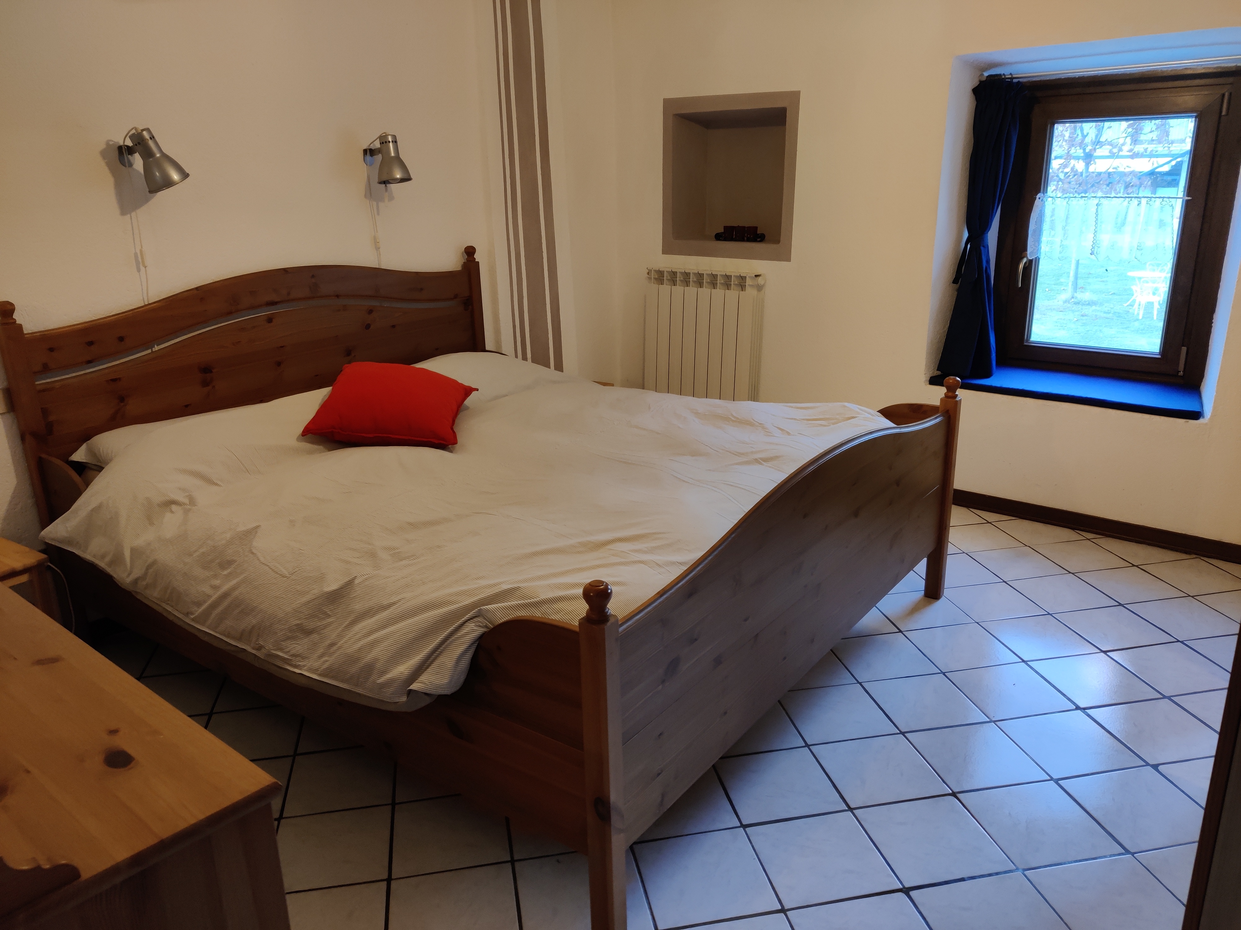 Suite indipendente con camera matrimoniale e soggiorno con divano letto singolo. Bagno privato, angolo colazione e vista panoramica sulle montagne e sul giardino.