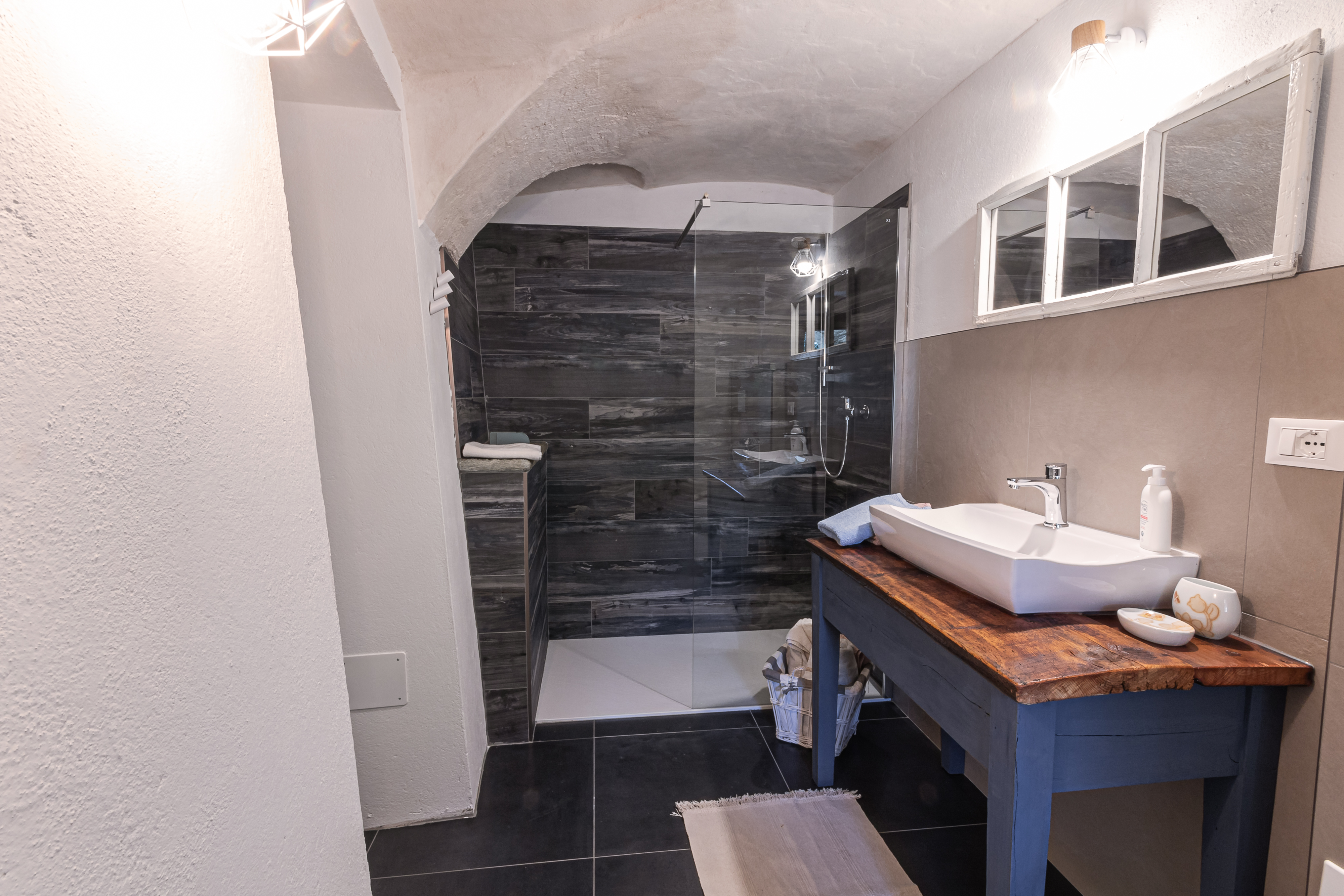Completamente attrezzato con due camere da letto (letto matrimoniale e letto ad una piazza e mezza) e divano letto matrimoniale con vista sulle montagne ed ampio parco con ulivi, vigne e castagni.
